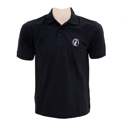 Svart piké med vit örn på bröstet i ecobomull. Finns i både dam- och herrstorlekar.