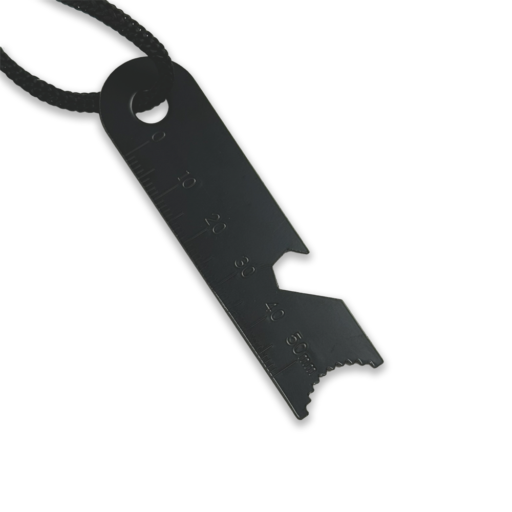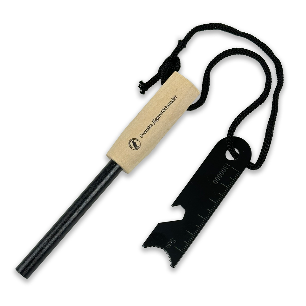 Består av tändstål och ett multifunktionellt tändbläck som kan användas för att skapa eld samt har funktioner som flasköppnare, precisionslinjal och sexkantsnyckel.